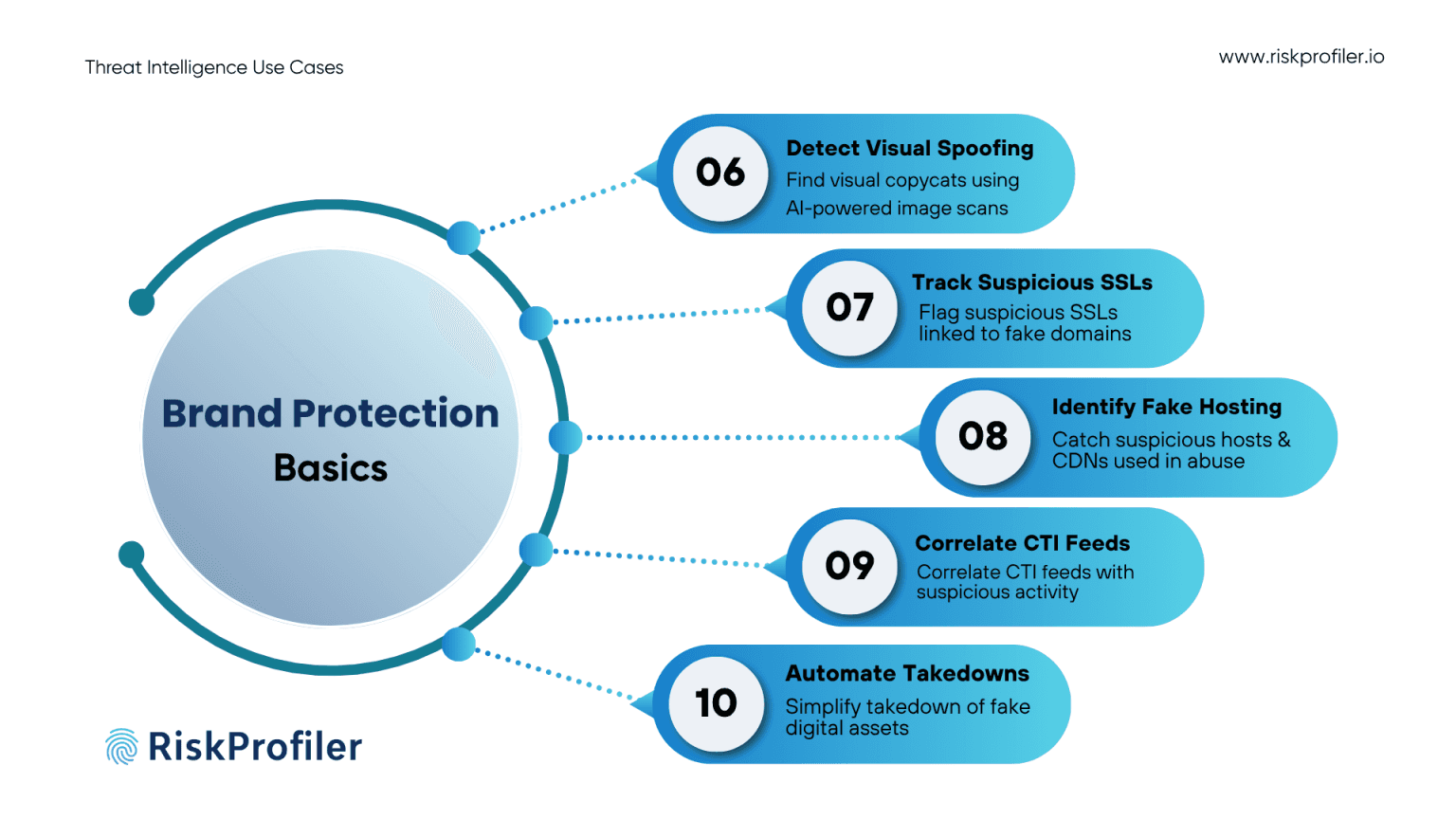 To take down sophisticated digital abuse and brand impersonation threats in real-time, brands should incorporate proactive and smart digital brand protection strategies. To track, identify, and take down brand threats in real-time, organizations need to utilize advanced brand and domain protection tools like RiskProfiler to recognize threats before they can cause severe damage. The top digital brand protection practices are as follows