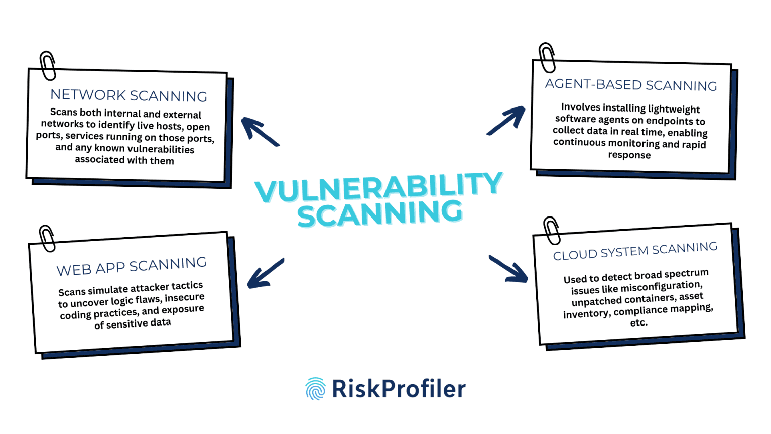Effective vulnerability management begins with accurate detection. Organizations must leverage a variety of scanning methods to uncover hidden weaknesses across networks, web applications, endpoints, and cloud environments—enabling proactive risk mitigation before attackers can exploit them. Here are the key scanning approaches used today: