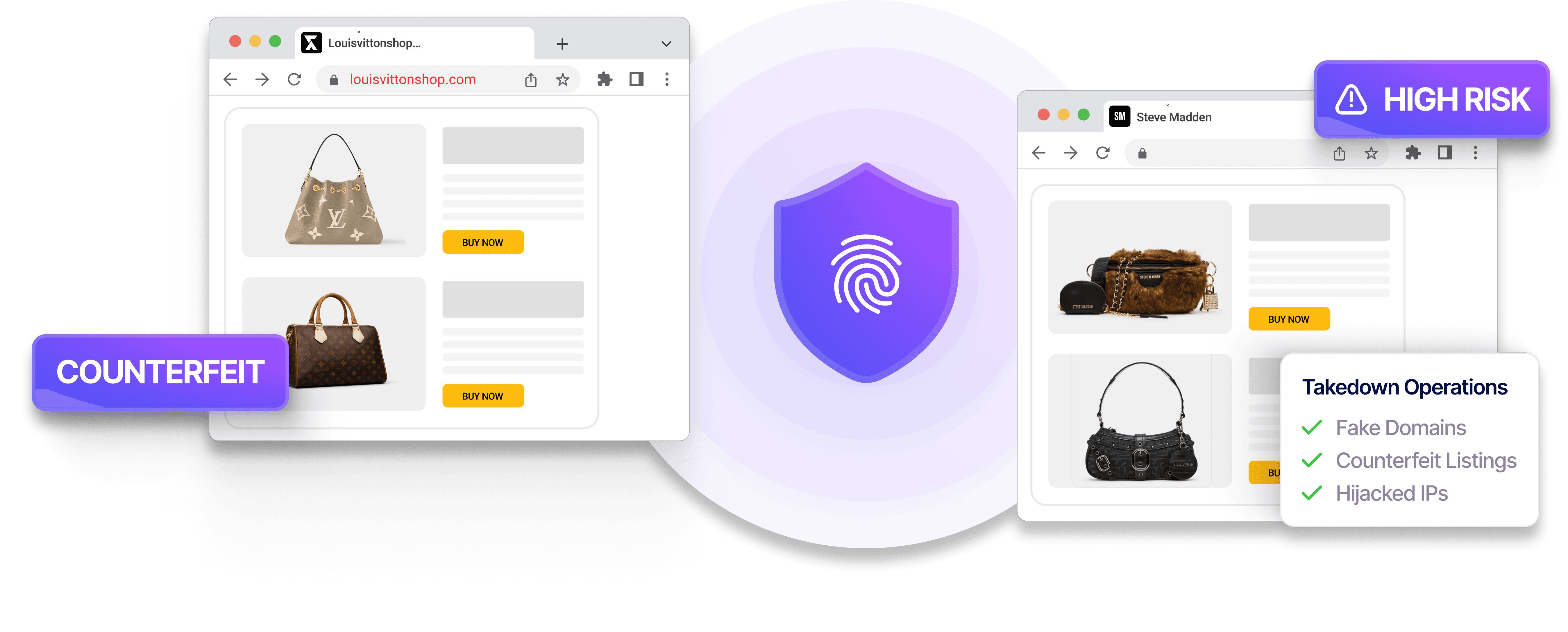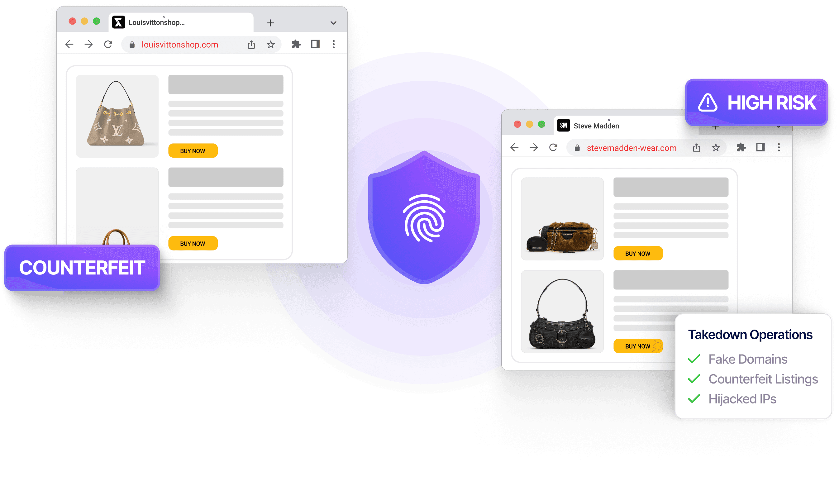 Remove fake domains, listings, and spoofed accounts