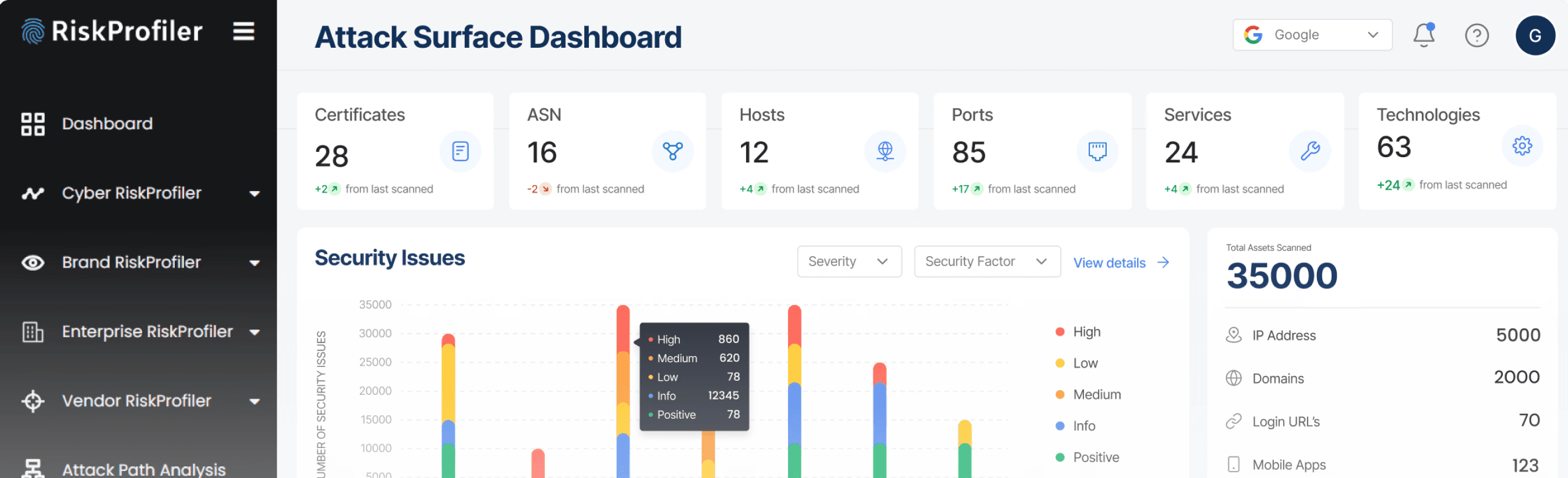 RiskProfiler Cloud External Attack Surface Managementhelps you inventory and manage your external-facing digital assets.