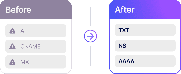 Detect DNS record modifications and misconfigurations risks. RiskProfiler validates changes instantly to ensure your DNS footprint stays secure and intact.