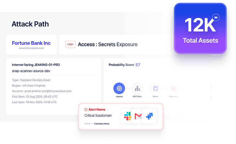 Continuously discovers, fingerprints, and evaluates your entire external ecosystem with automated recon, OSINT attribution, and AI-driven risk insights.