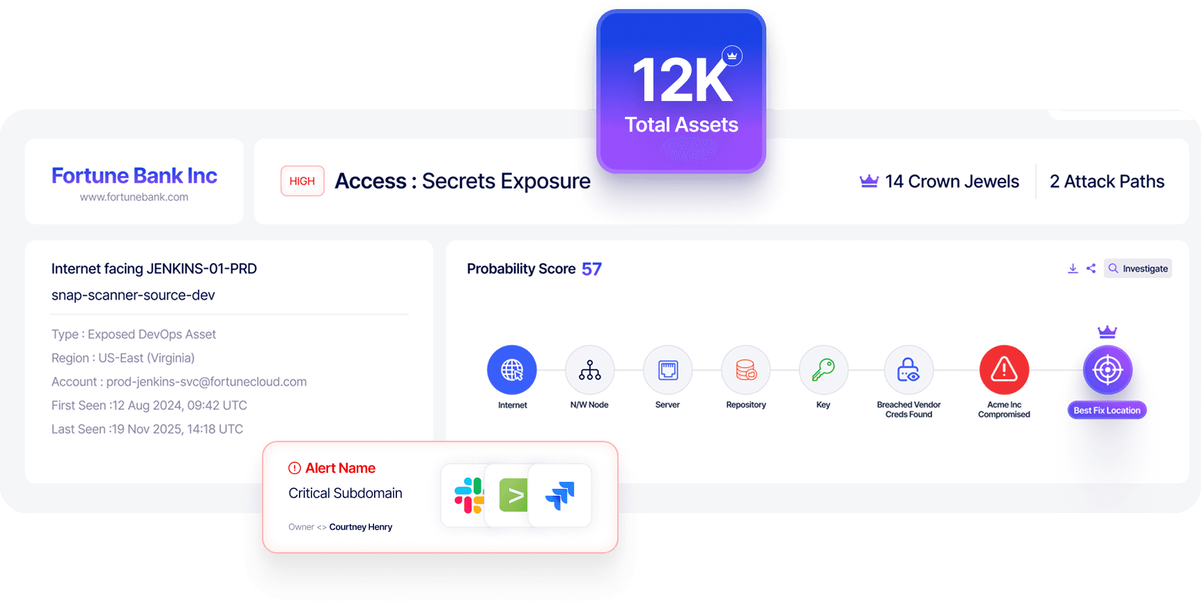 Analyze risks, misconfigurations, ownership shifts, and correlate issues with asset criticality.