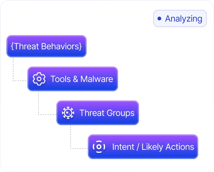 Agentic AI links threats to attacker groups, tools, and malware, clarifying intent, strategy, and likely actions.