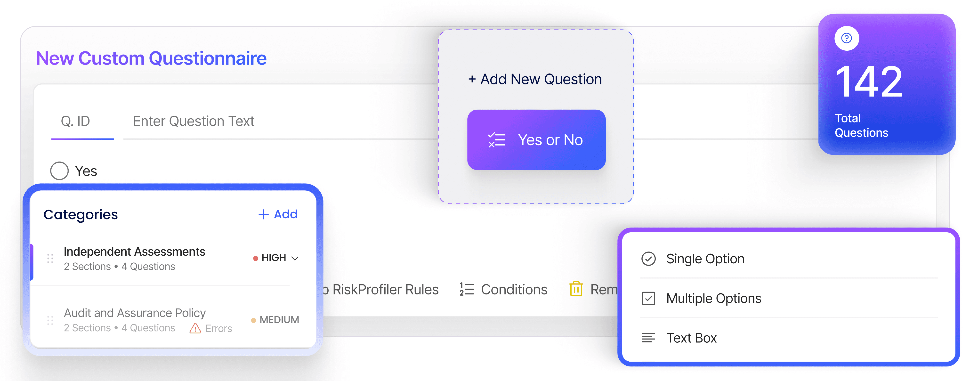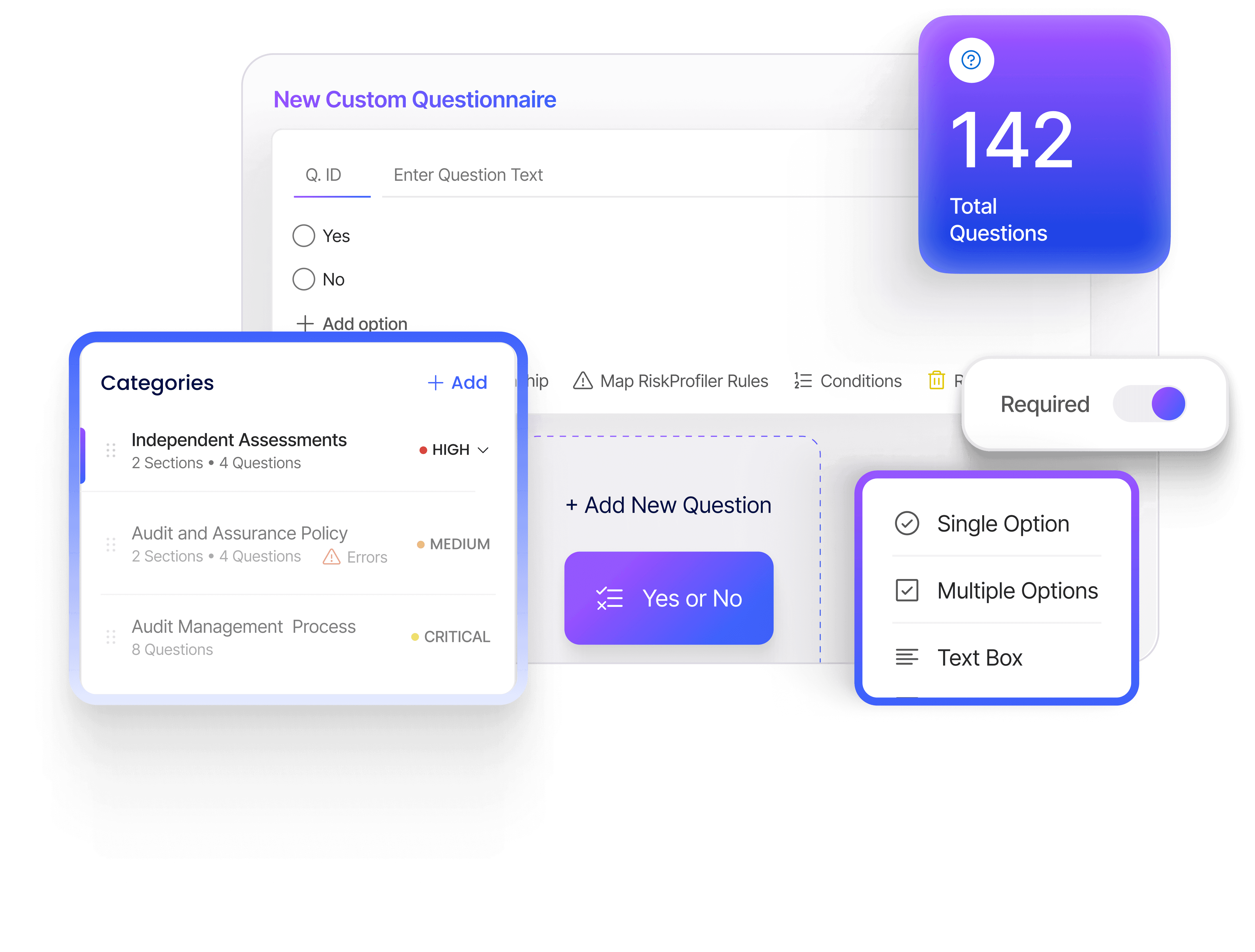 Yes. RiskProfiler’s vendor risk questionnaire is designed to scale across large enterprises and MSSPs managing extensive vendor portfolios. It supports multi-tenant workflows, customizable assessment templates, and role-based access, enabling teams to assess vendors consistently, manage risk centrally, and support multiple clients while maintaining clear visibility, governance, and compliance alignment.