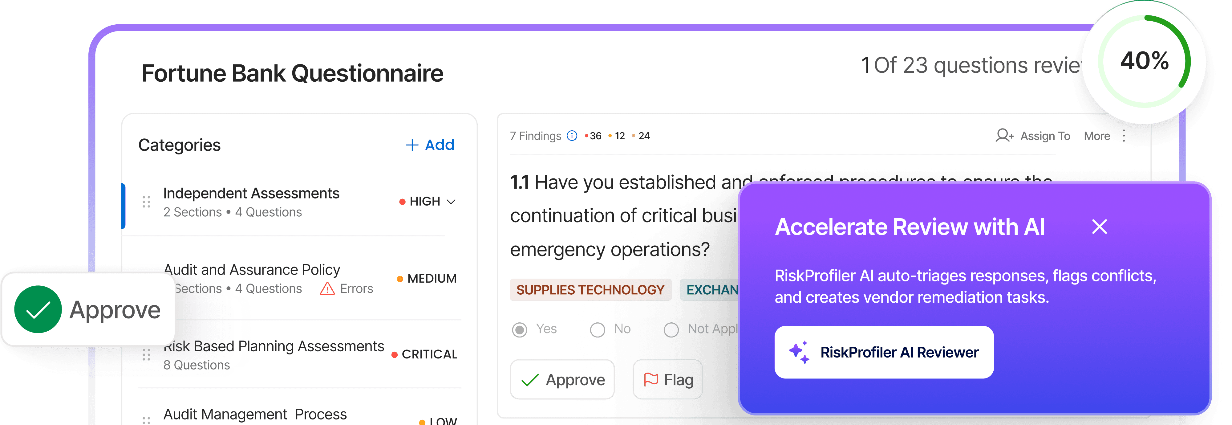 Unlike traditional, static, Excel-based vendor risk questionnaires, RiskProfiler uses agentic AI to automate assessments, validate responses, and correlate them with real-world risk intelligence. This eliminates lengthy back-and-forth, improves accuracy, and enables faster, intelligence-driven vendor risk decisions across large third and fourth-party ecosystems.