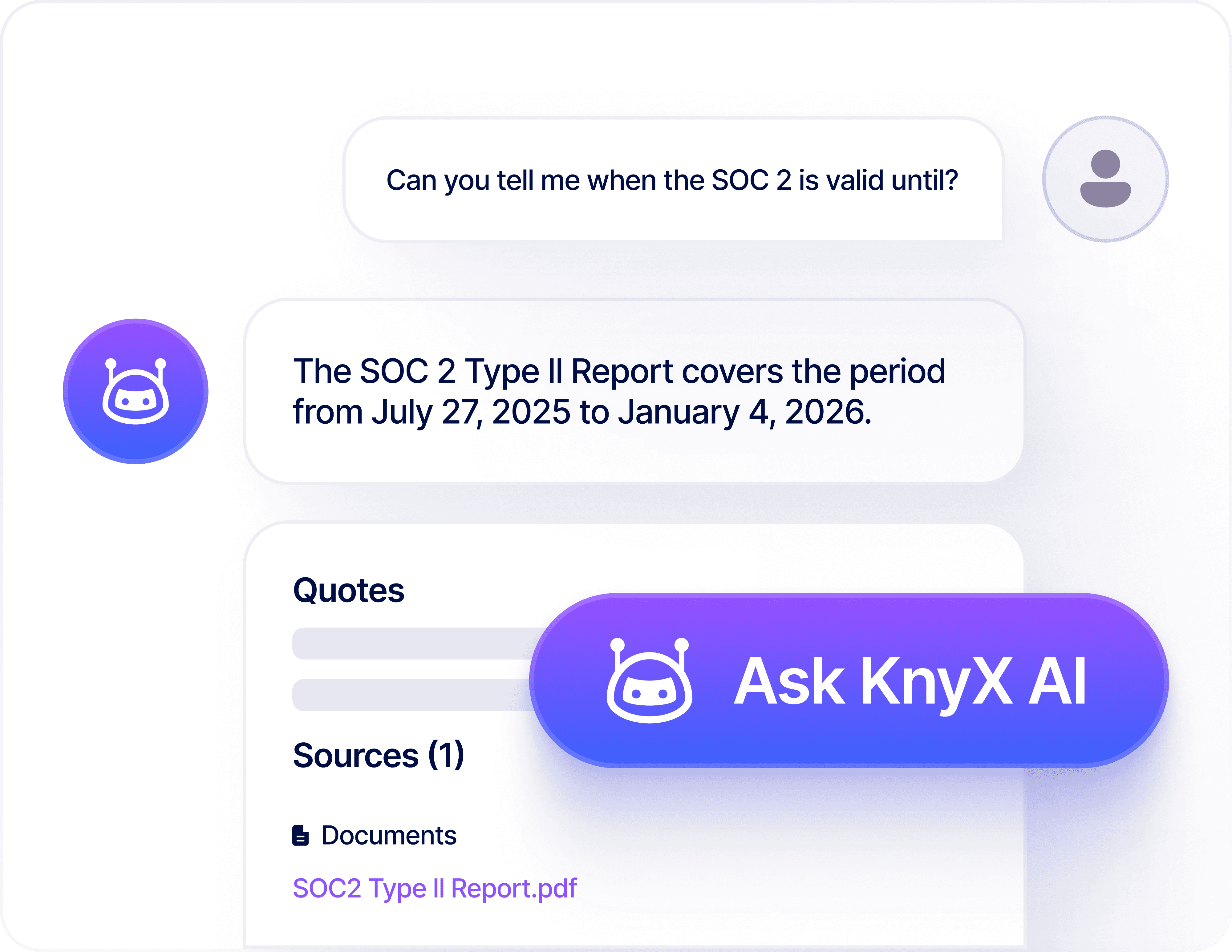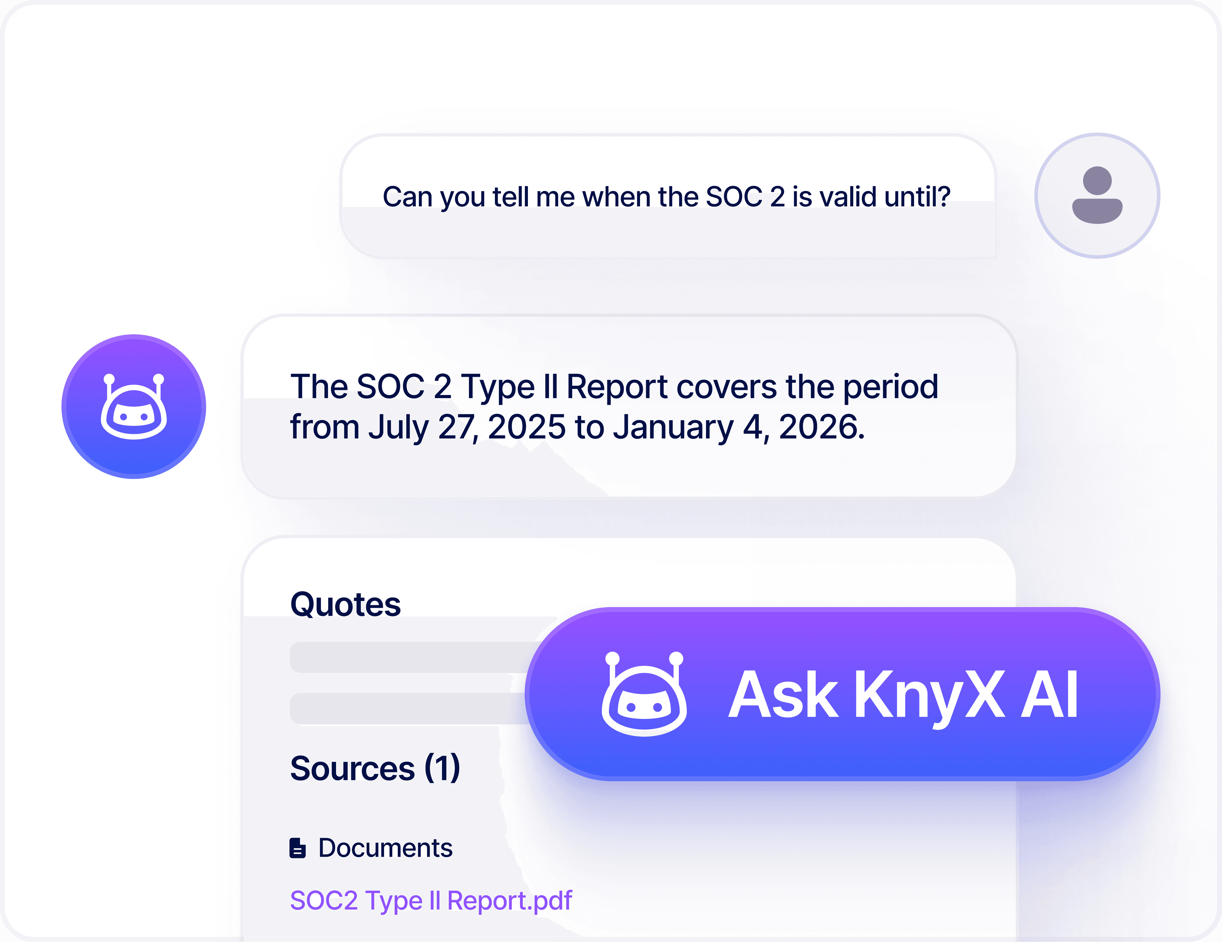 KnyX AI maps your Trust Center documents, policies, and past responses to generate precise answers for complex security questionnaires and DDQs.